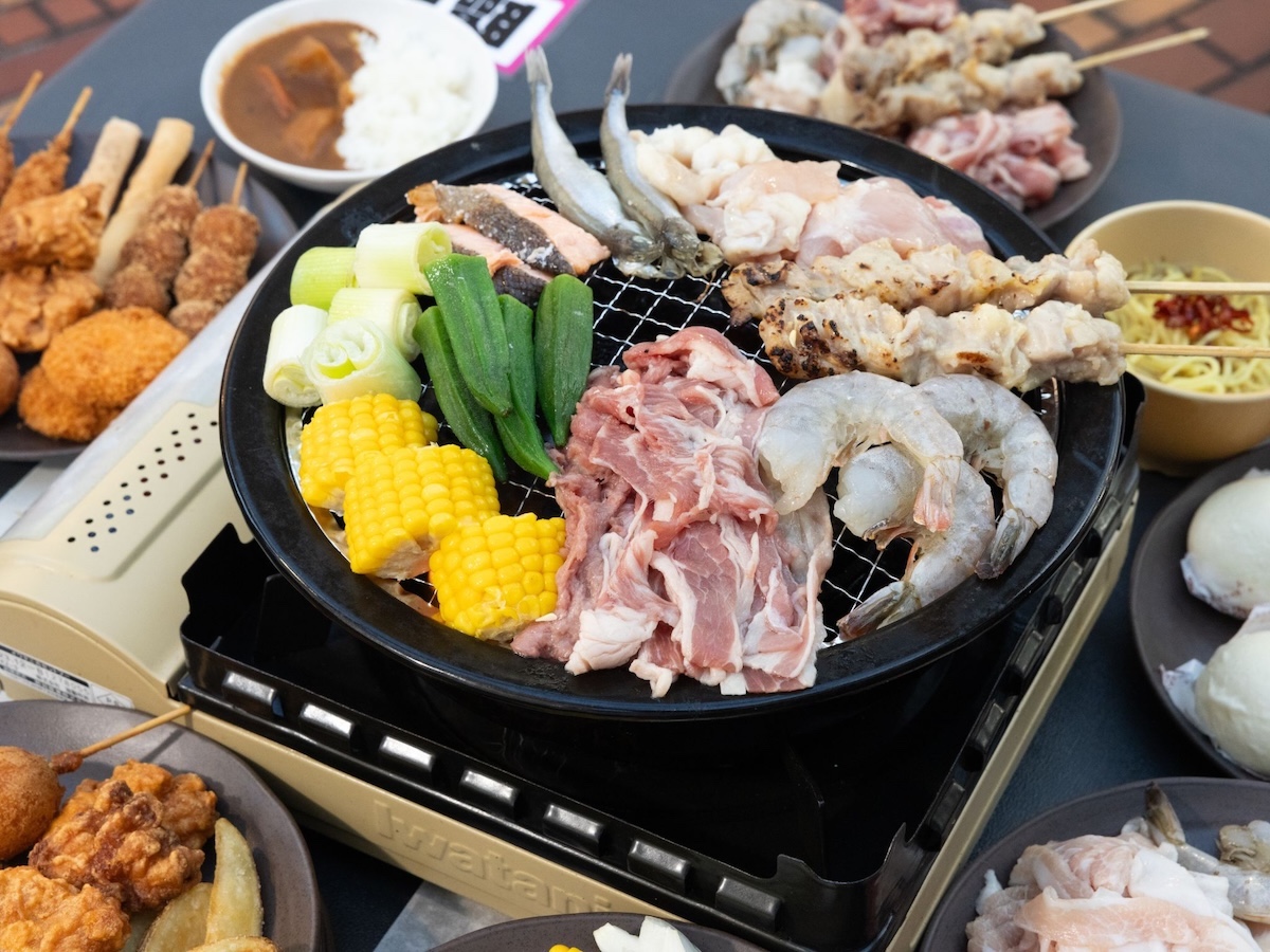 フードは、焼肉BBQをメインに、海鮮焼きや揚げ物、軍艦寿司、デザートなどが食べ放題。好みにあわせてアレンジもできて、楽しみ方も無限大です。