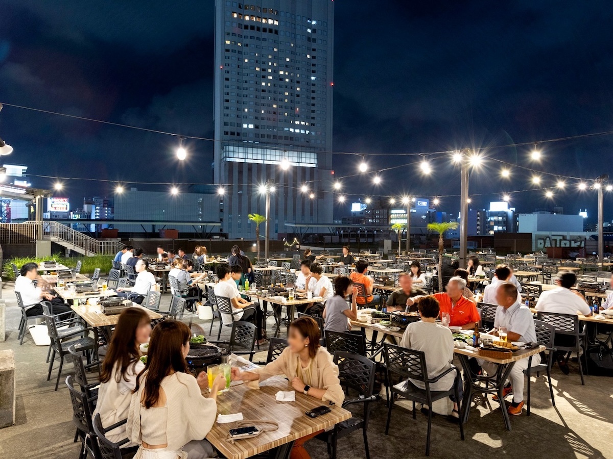 開放感たっぷりの屋上で、北海道の味覚をBBQやビュッフェで楽しめる「BBQビアガーデン北海道 名駅」。