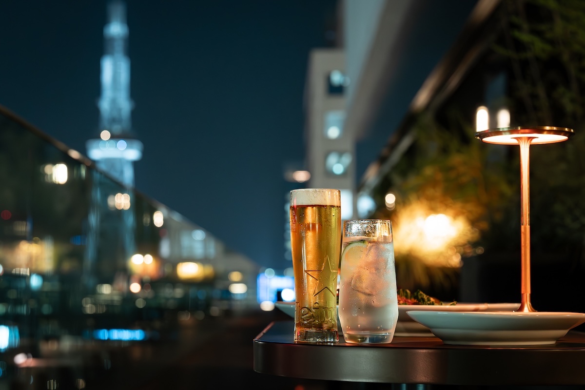 名古屋のランドマーク「MIRAIタワー」を一望できる絶好のロケーションに、「ビアガーデン&MIRAI TOWERビュー "URBAN" 栄駅店」が2024年7月にオープン。
