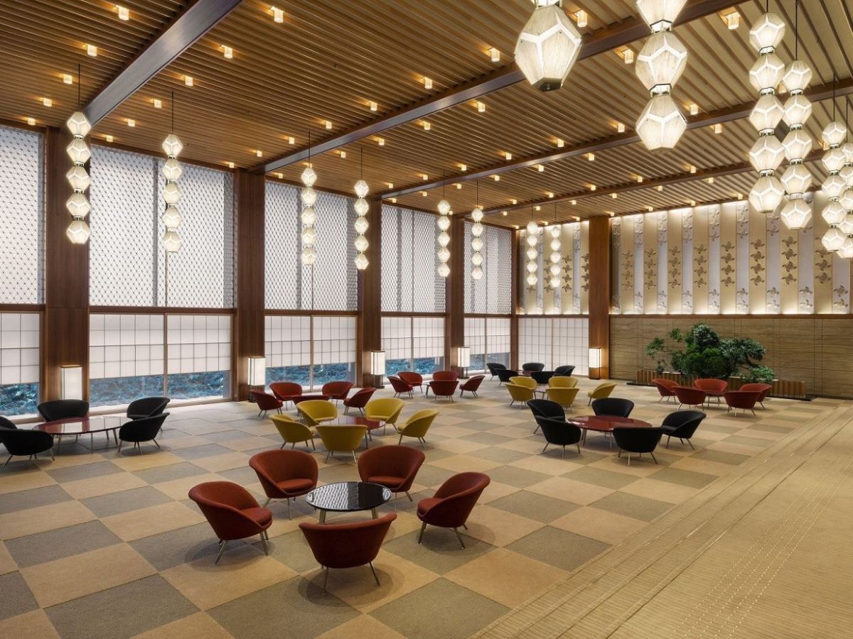 「ホテルオークラ東京」が建て替えられるというニュースが流れたときは、惜しむ声も多くありましたが、「ホテルオークラ東京」時代のロビーが見事に再現され、旧来のファンを驚かせました。ホテルの顔ともいえるロビーは「静かにくつろげる場所」をコンセプトに、柔らかな自然光が美術組子と障子を透けて差し込んだ格調高い空間となっています。