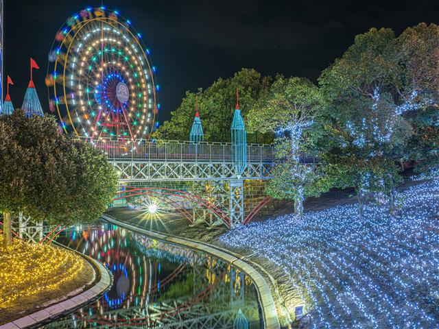 スリル満点のジェットコースターや約59mの高さで回転するブランコのほか約20種類のアトラクションにプール、日帰り温泉施設などを備えた「レオマリゾート」。春・秋のバラや初夏のあじさいなど季節の花々が咲く「レオマ花ワールド」や、夜のプロジェクションマッピング、イルミネーションアワードを連続受賞している「レオマ光ワールド」なども人気のイベントで、多彩な楽しみ方ができるところが人気をよんでいます。