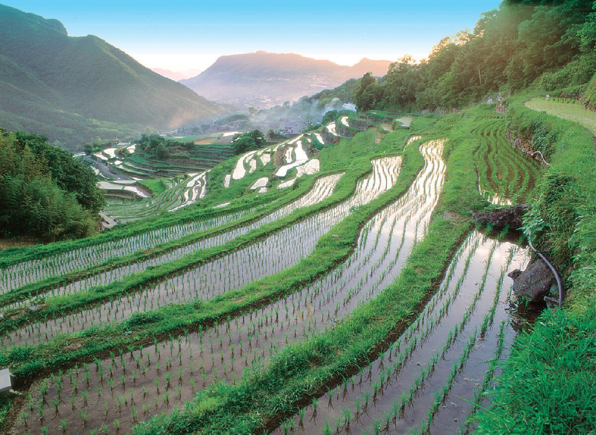 「中山千枚田(なかやませんまいだ)」は、大小約800枚もの棚田が広がる「日本の棚田百選」のひとつ。四季折々の表情をみせる姿は日本の原風景と称され、映画『八日目の蝉』のロケが行われた場所としても広く知られるようになりました。田植え後の6月上旬〜中旬には輝くような水田が見られ、絶景です。頭を垂れた稲穂が黄金色に輝く初秋も感動的な美しさです。