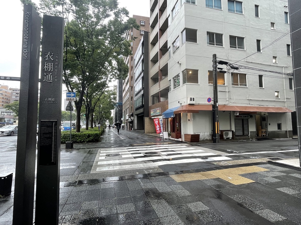 地下鉄烏丸御池駅2番出口を出て御池通りを西へ進むと、3筋目の衣棚通り北西角に、天進ビルが見えてきます。お香づくりが楽しめる「mikou」があるのは、このビルの2階。駅から徒歩約3分の場所です。