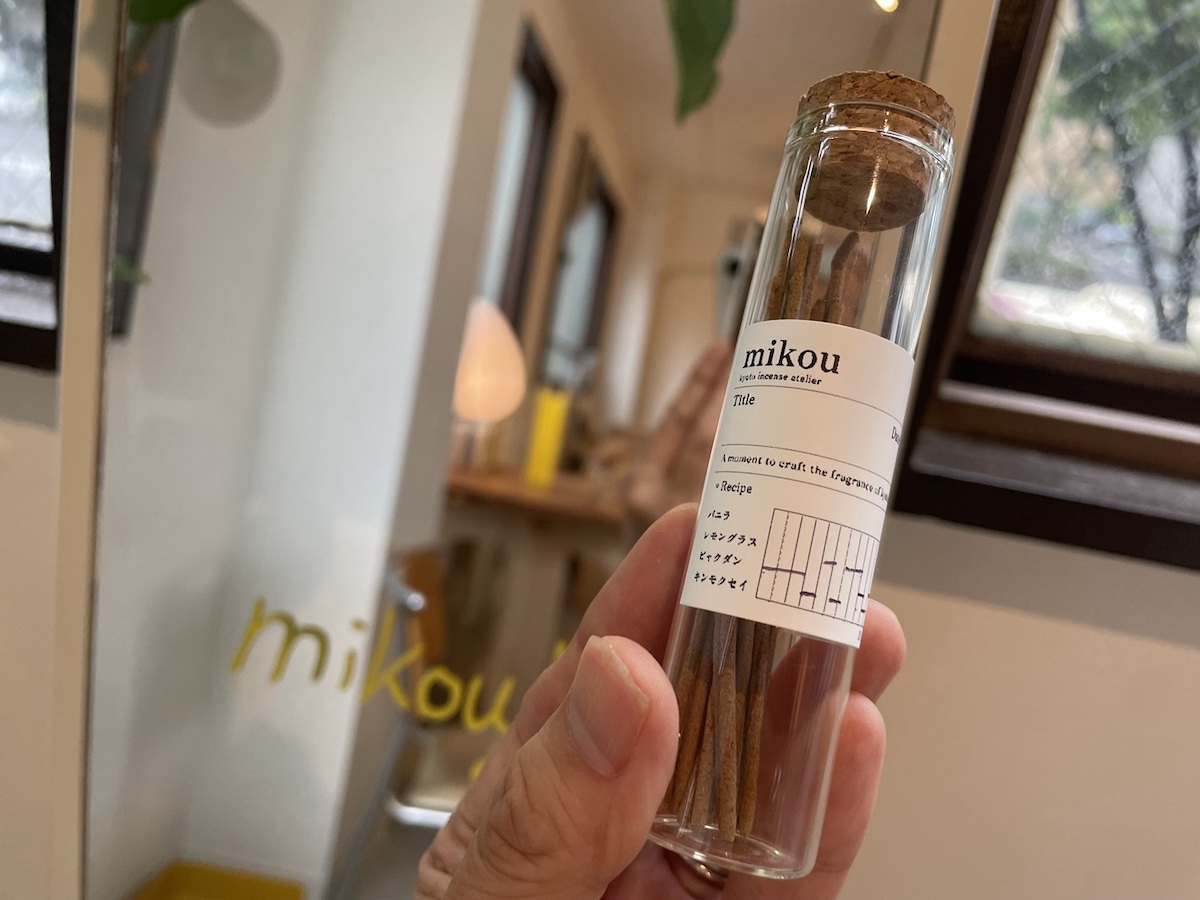 「mikou」では、「パロサント(香木)」1本600円や、パッケージ入りの「お香」1500円の販売もしています。京都観光の思い出に、自分だけの香りづくり体験、特別な京都のおみやげづくりを、ひとりでじっくりとしてみてはいかがでしょうか。京都らしい香りの文化を、暮らしに取り入れるきっかけにできそうです。