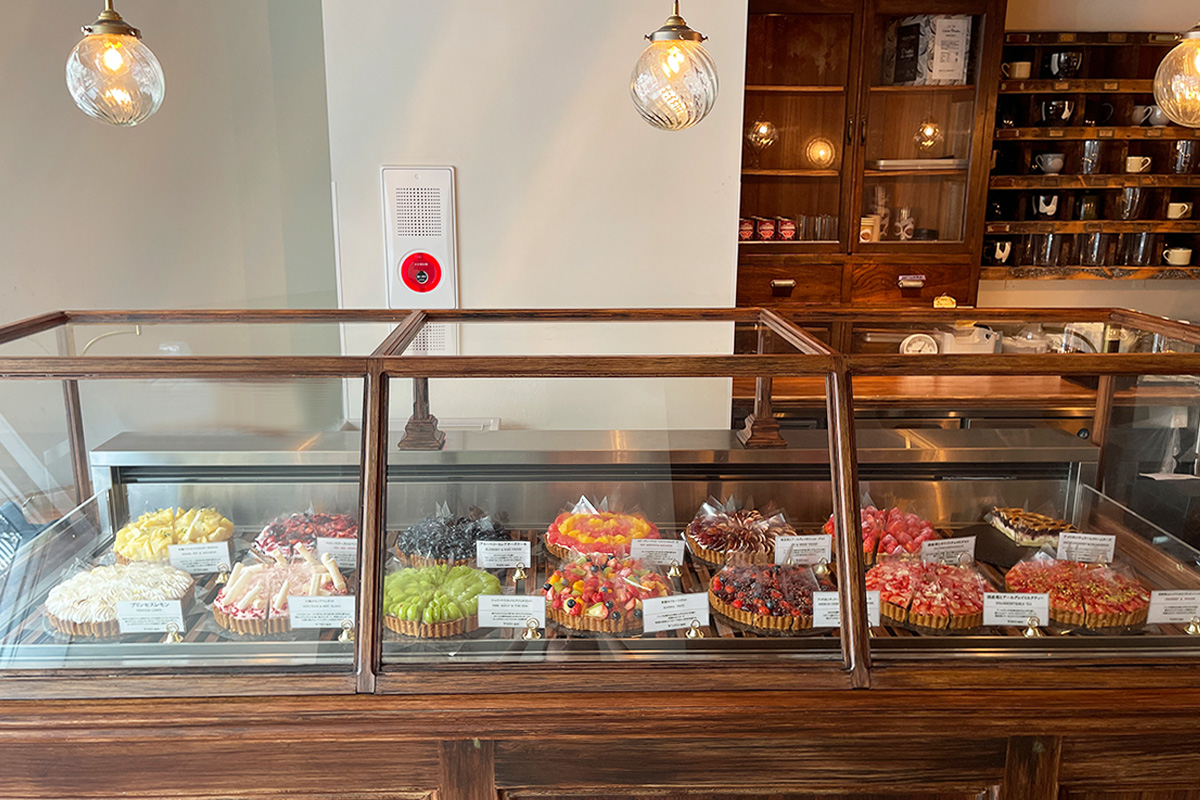 お店に入ってすぐのショーケースには、まるできらめく宝石のように14種類のタルトが並んでいます。