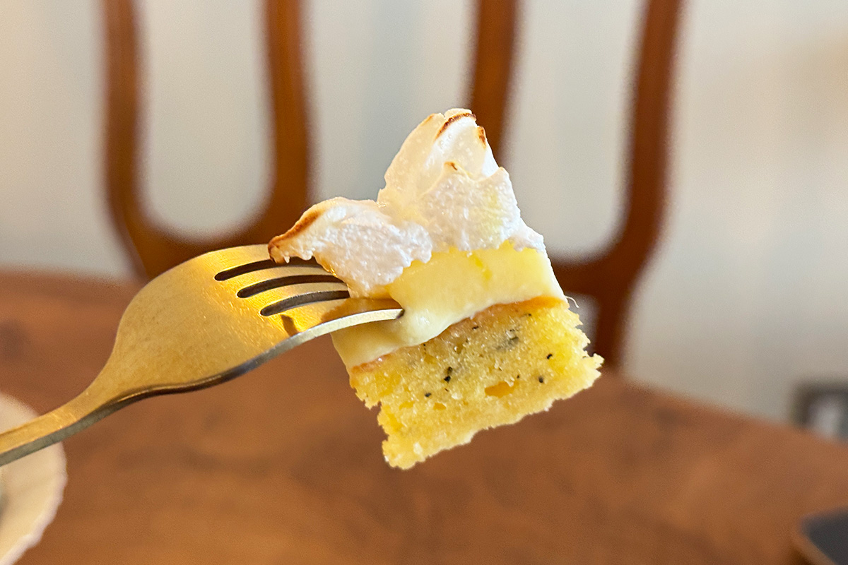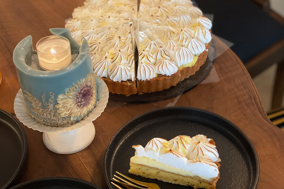 タルトとレモンカスタードクリームの間には、レモンジャムを塗ることで、さらにレモンの風味をアップ。フワフワとしたイタリアンメレンゲの上にはレモンピールをトッピングして、タルト全体を通して抜かりなくレモンの味わいを楽しむことができます。