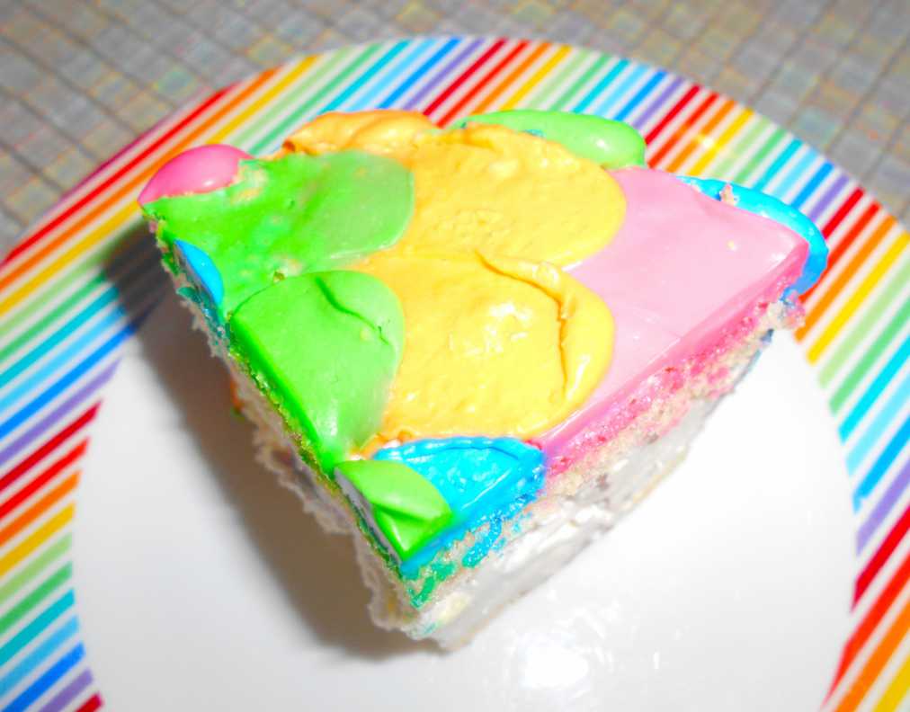 続いては「カラフルポイズンCAKE(ケミカル)」(1/4サイズ850円)。表面の極彩色のコーティングはチーズクリーム。ほんのり感じるチーズの塩気と、チョコチップが入った生クリームの相性が絶妙にマッチ!ホールサイズ(2800円)はバースデーケーキとしても人気なんだとか。