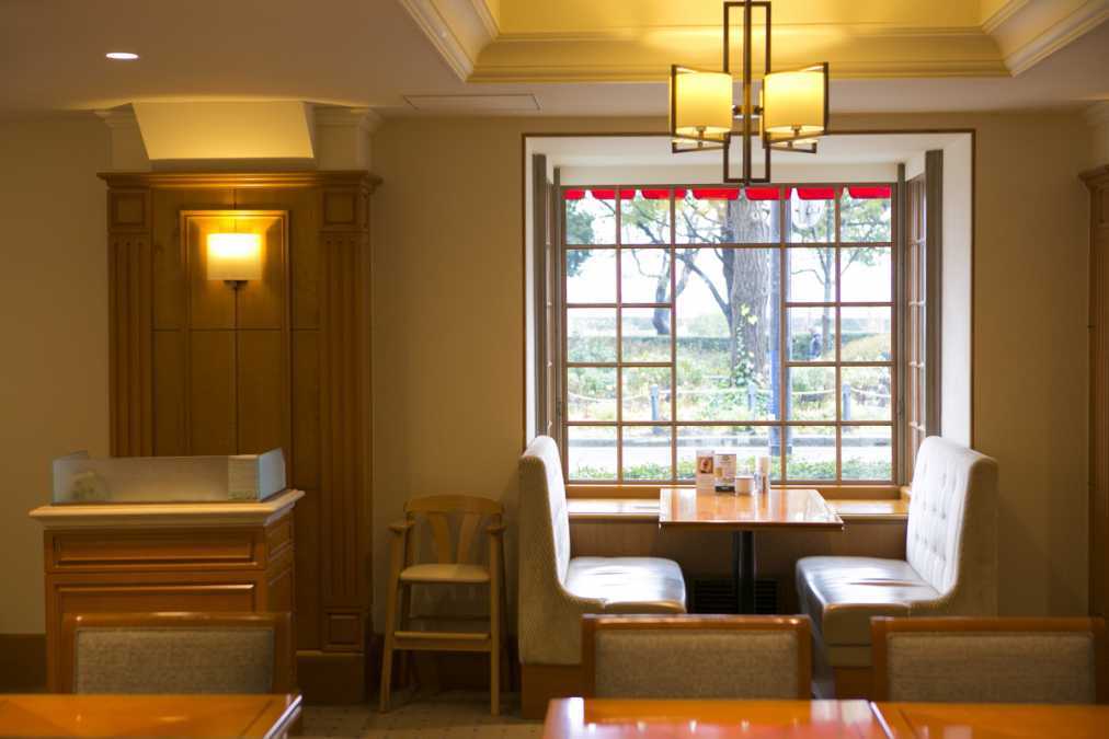 店内にはカウンター席とテーブル席があり、大きな窓に面したテーブル席からは緑豊かな元町公園を見下ろすことができます。四季折々の風景を眺めながらカフェタイムを楽しめるのが魅力。