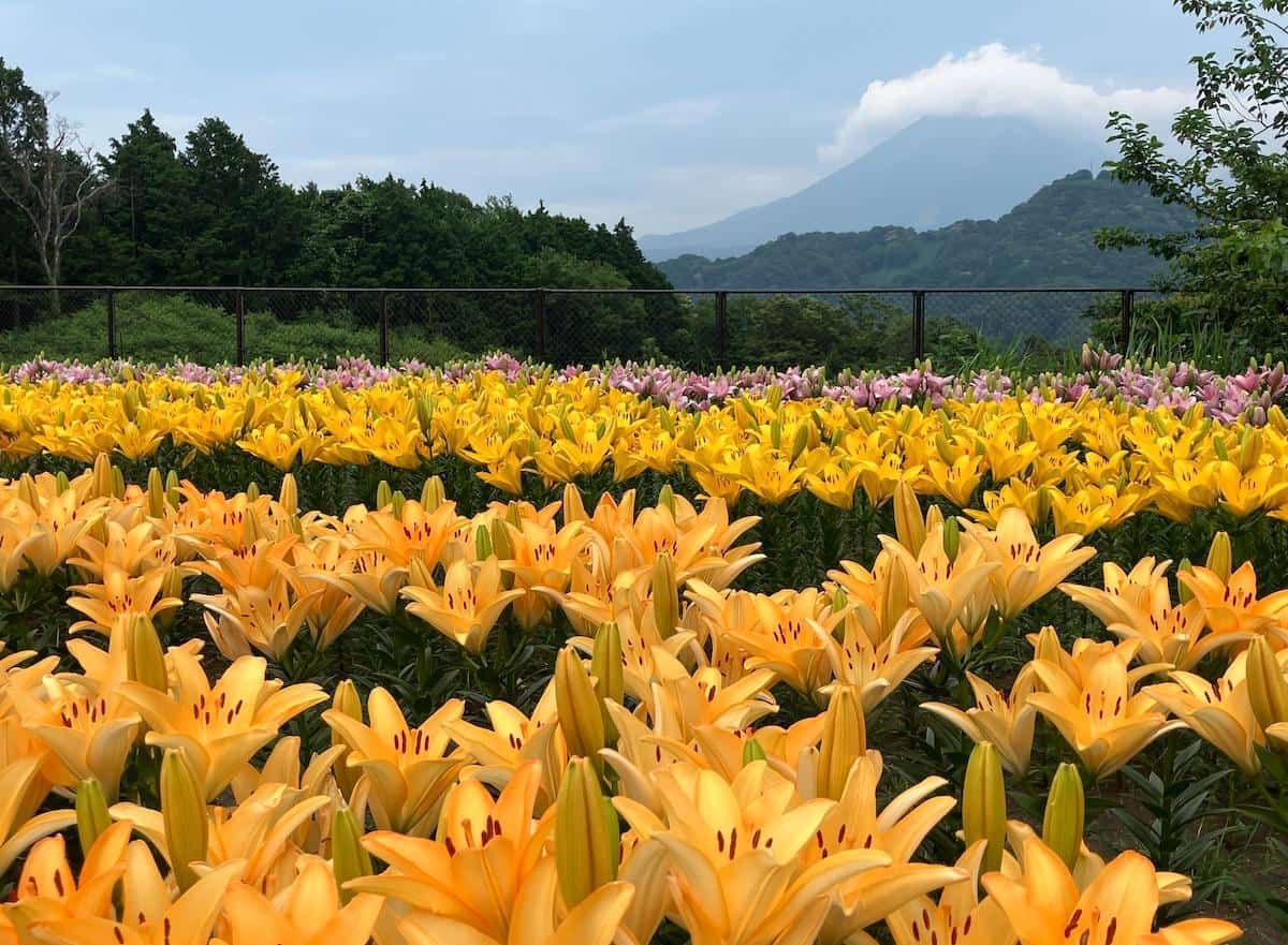 総面積約50haを誇る日本最大級のフラワーパーク「とっとり花回廊(とっとりはなかいろう)」。名峰大山を望む園内では、高さ約21m、直径約50mのガラス張り温室を中心に、エントランスの西館、熱帯・亜熱帯の植物が生い茂る南館、ゆりを展示する東館、展示スペースや展望休憩所が入った北館の4館を、1周約1kmの屋根付展望回廊が結んでいます。周囲には広大な花畑や花壇が広がり、四季折々の花を楽しむことができます。