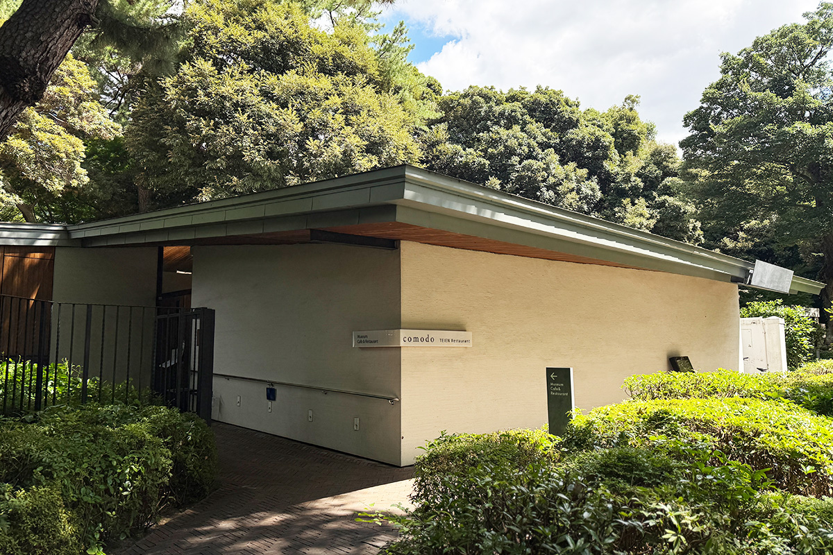 JR・東急目黒線目黒駅から徒歩7分の場所にある「TEIEN Restaurant comodo」。優雅なアール・デコ洋式の洋館や展覧会が楽しめる「東京都庭園美術館」の広大な庭園内にあります。お店の周りはまるで避暑地を訪れたように緑が多く、小旅行気分が味わえます。