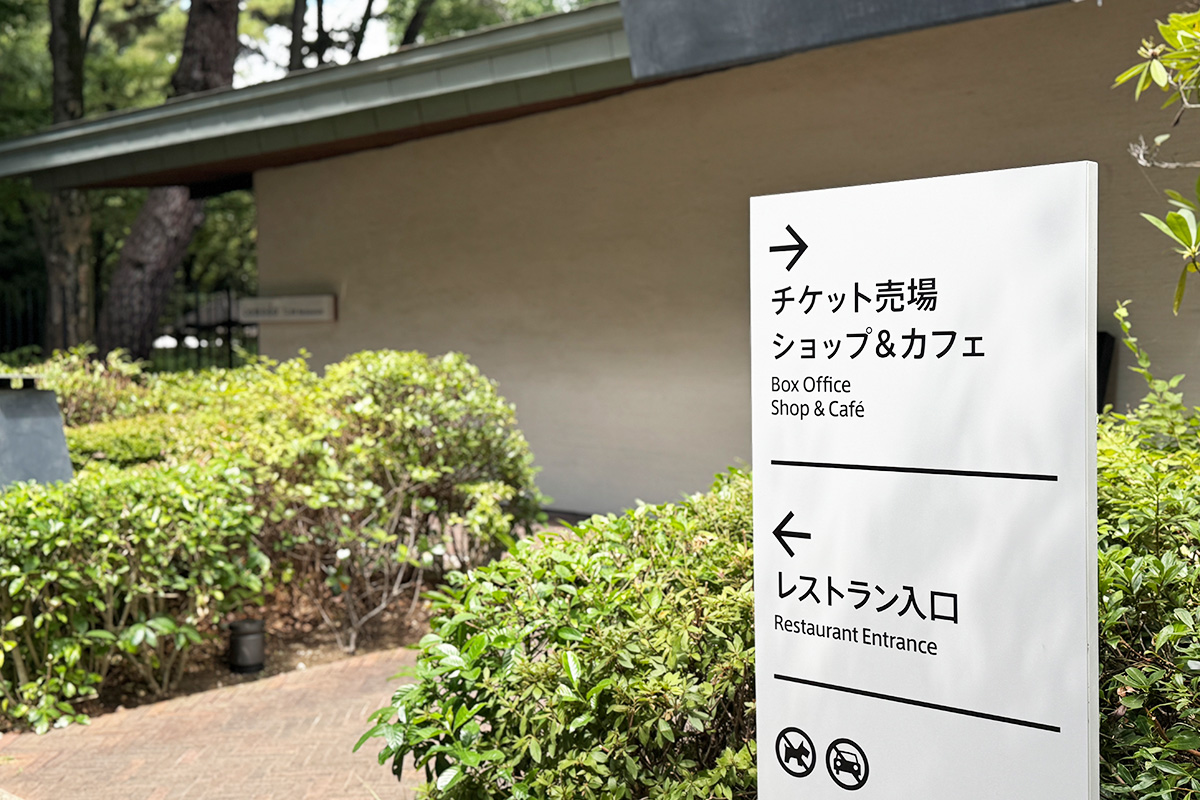 「東京都庭園美術館」の正門またはレストラン専用の門からお店に入っていきましょう。美術館の正門からレストランに向かう場合は、向かって左に進むと大きな看板があるため、迷うことなくお店に辿り着くことができました。