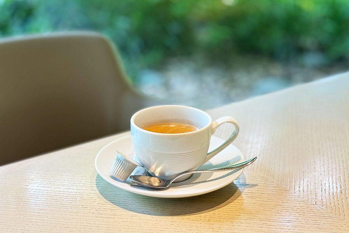 食後は温かいコーヒーか紅茶をいただけます。緑が広がる空間のなかでコーヒーを飲みながら、ゆっくりとコース料理の余韻に浸りましょう。