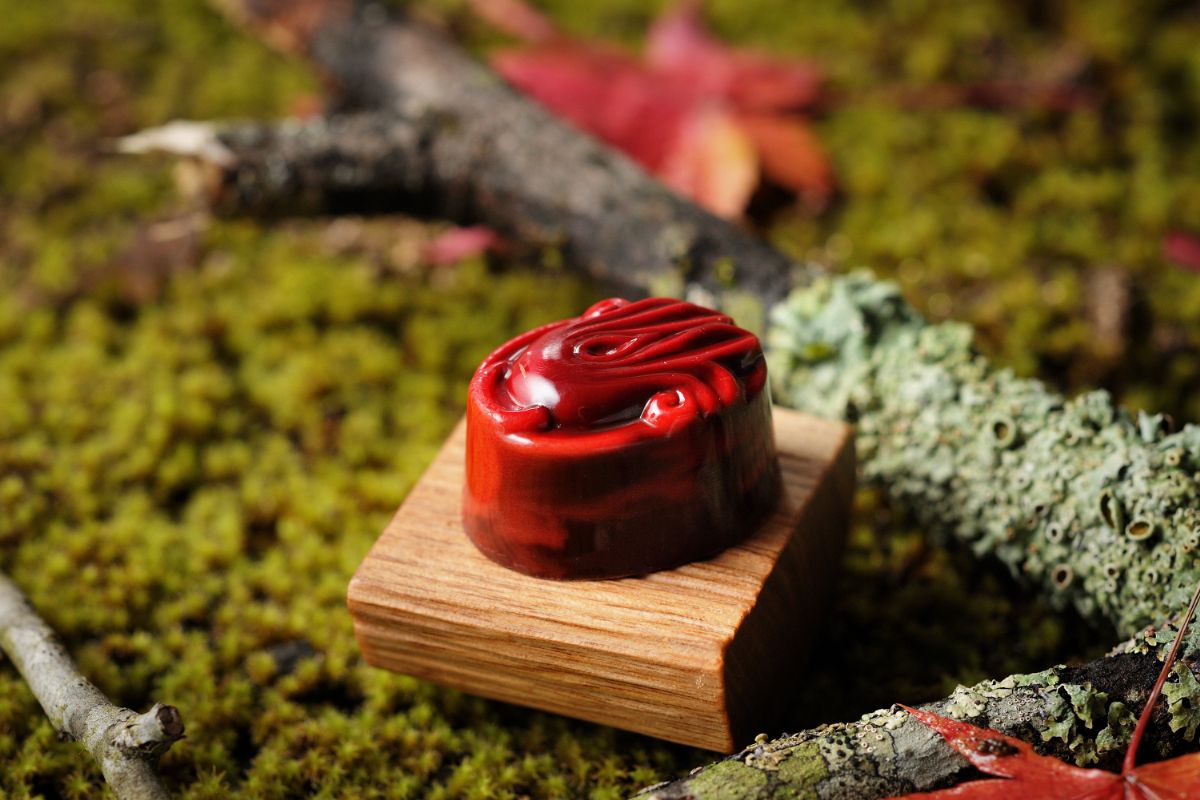 カエンタケ:触れるだけで皮膚に炎症を引き起こすカエンタケの危険な存在感を、とうがらしを利かせたビターなチョコレートで表現したチョコレート