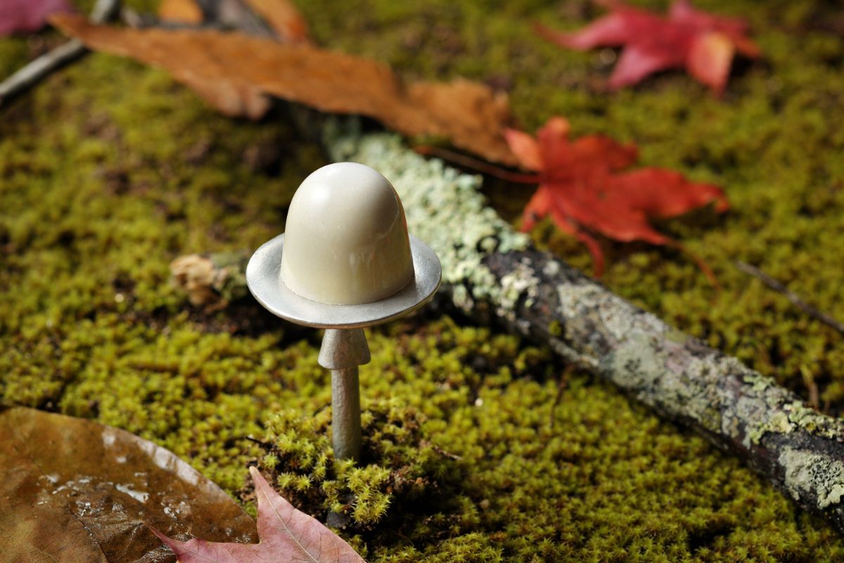 ドクツルタケ:内臓を破壊するほどの猛毒をもつドクツルタケの危うさを、シャルトリューズとアブサンの刺激で表現したホワイトチョコレート