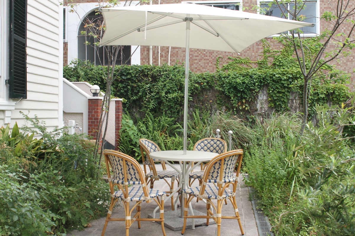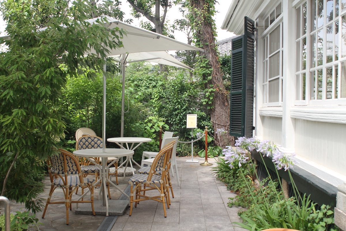 気候がいい時期はテラス席が素敵です。庭に植栽されているハーブの香りを楽しみながら、優雅なひとときを過ごすのも◎。 座席の指定予約は確約できないので、どの席になるかは当日のお楽しみです。