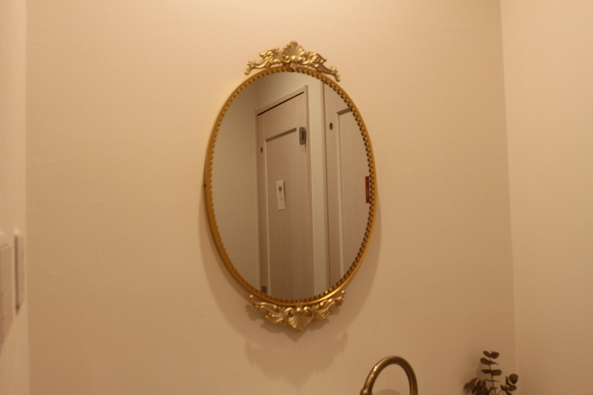 店内でひそかに人気を集めるフォトスポットが、トイレ前にある鏡。鏡に映る自分を写真に撮るお客さんが多いそうなので、来店時はぜひチェックしてみてくださいね。