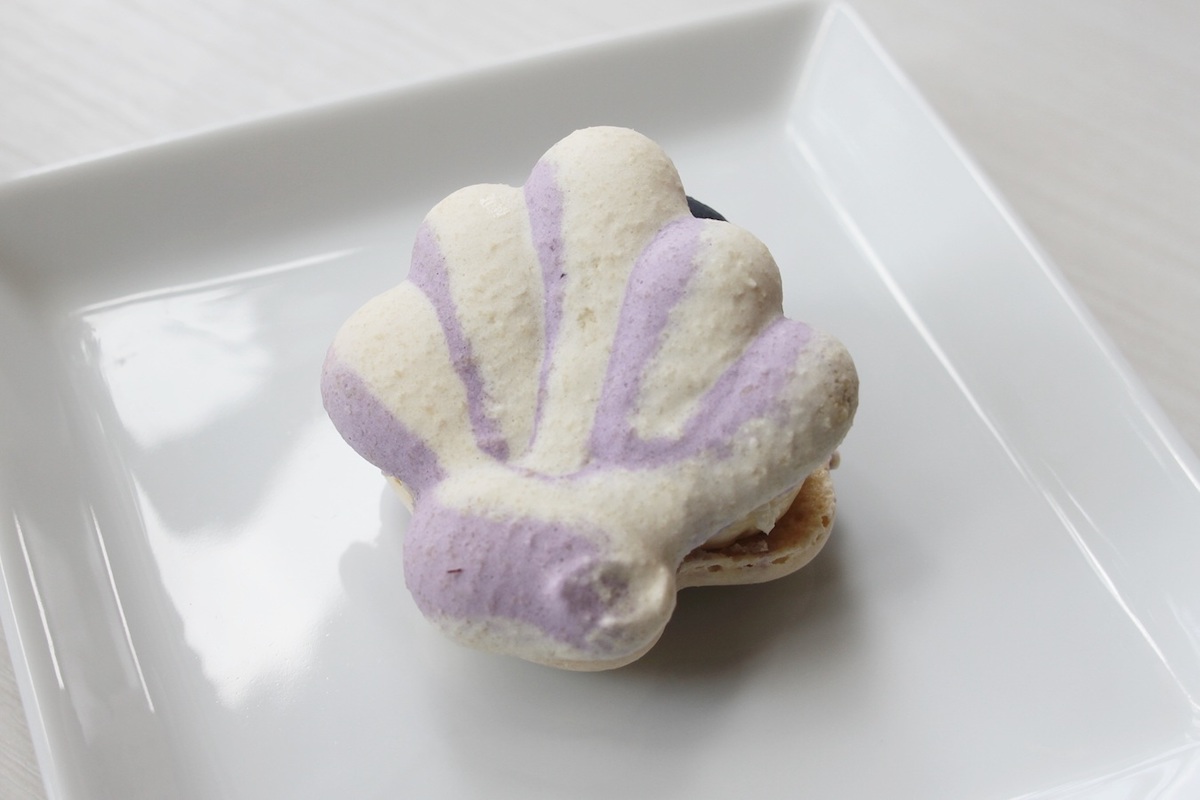 なかでも目を引いたのが、貝殻の形をした「ブルーベリーのシェルマカロン」。色が混ざらないようにするのが難しいそうですが、港町神戸らしいデザインが、とってもかわいくて食べるのがもったいないと思うくらい!