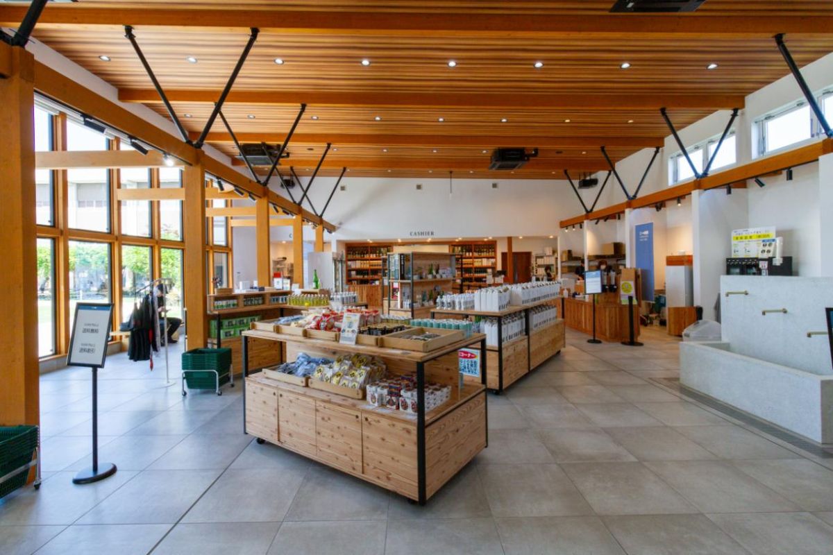 こちらは、リニューアルで新しく新設された売店。店内は木材を利用しており、優しく明るい印象です。売店では酒蔵限定商品を含む男山の日本酒も販売しているほか、仕込み水を使ったカフェメニューを提供しています。