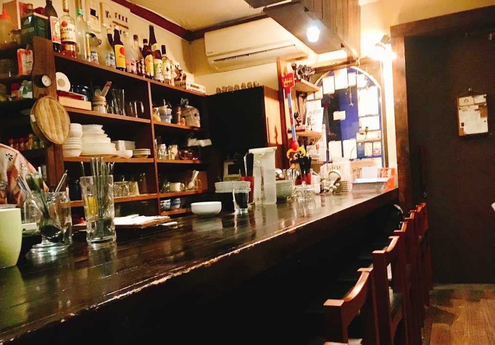 店内に一歩入ると木の温もりを感じるインテリアと、漫画やDVDが並んだ棚などが目に入り、どこか懐かしい雰囲気。カウンター席のみなので、オーナーの赤川さんや隣の人とも自然と会話が弾みます
