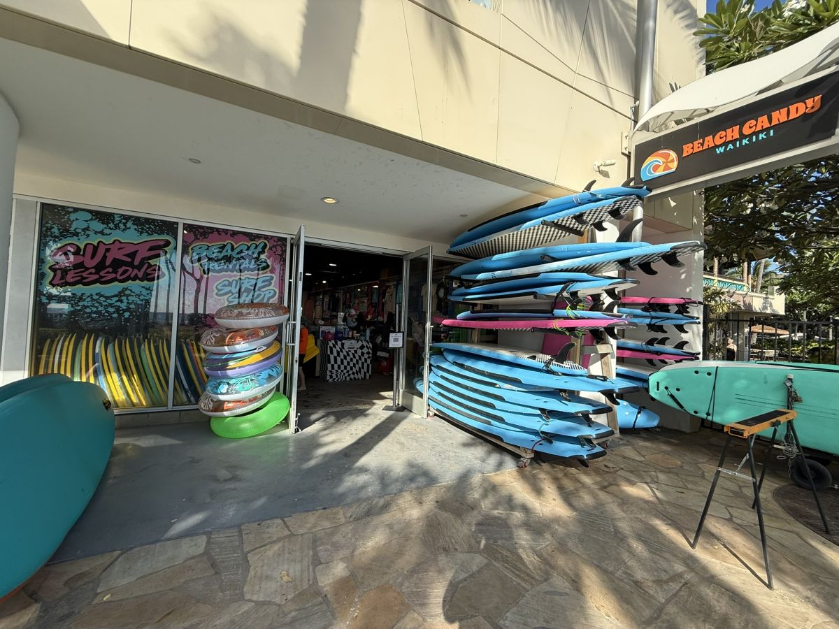 このクレジットを使って、パドルボード、サーフボード、ビーチチェア、パラソル、ビーチトイなどのビーチ用具を無料でレンタル可能です。「ビーチキャンディ・ワイキキ」は、ツインフィン・ワイキキの1階にあり、ホテルからは少し距離がありますが、デリバリーサービスにも対応。デリバリーを希望する場合は、フロントデスクで相談できます。