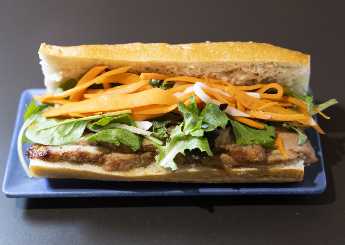 「チャーシュー・バイン・ミー」に入っているのは、マナプア(ハワイ風肉まん)などにも多く使われている、ハワイスタイルのチャーシュー。ホノルル・チャイナタウンなどで見かける、独特のチャーシューがぎゅっと挟まれたバイン・ミーは、噛めば噛むほど、しっかりとした旨味が口の中に広がりますよ。