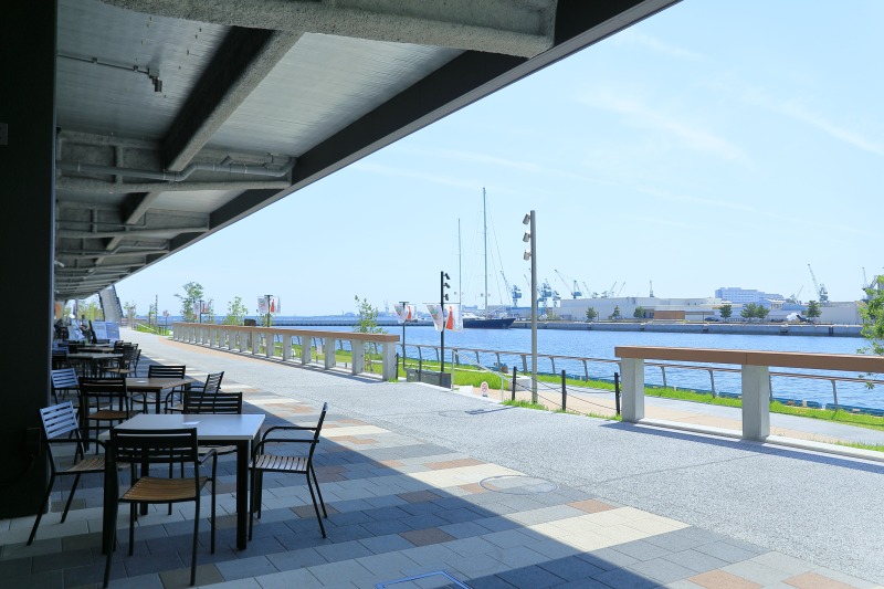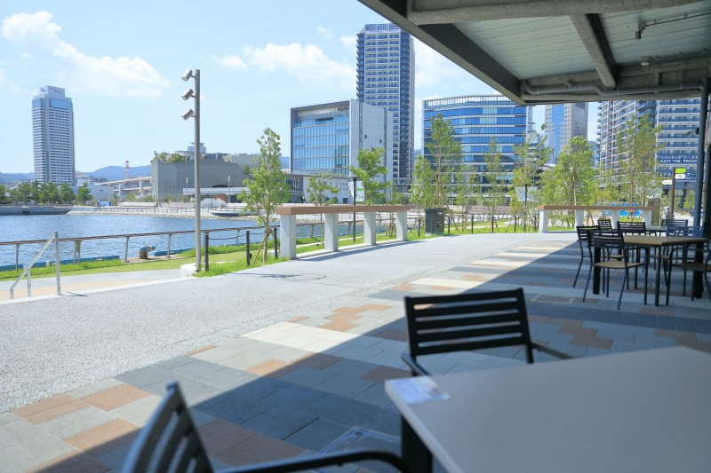 テラス席からはハーバーランドが一望でき、時間の流れを感じさせない空間で癒やされます。