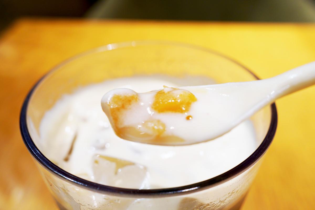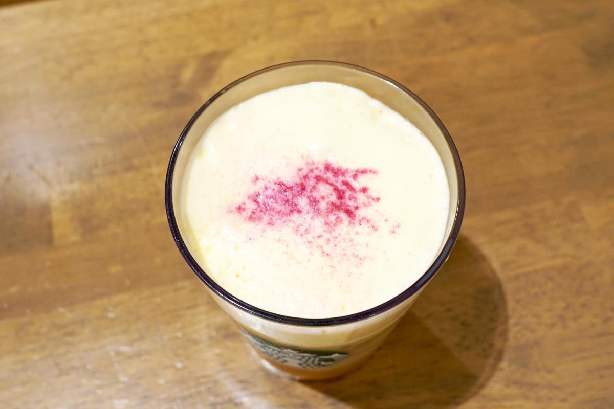 全体を混ぜあわせて飲んでみました。まろやかなミルク×冷やし焼き芋の風味たっぷり。やさしい甘みが口いっぱいに広がり、追いかけるようにほうじ茶の香ばしさがふわっと鼻に抜けていきます。