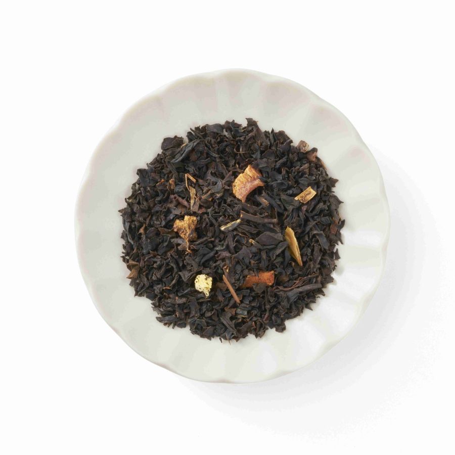 ベースの濃厚でコクのあるアッサムティーは、茶葉に乾燥させたりんごとフリーズドライにした黄桃が混ぜられ、果実のジューシーな香りがふんわりと漂うドリンクに仕上げられています。