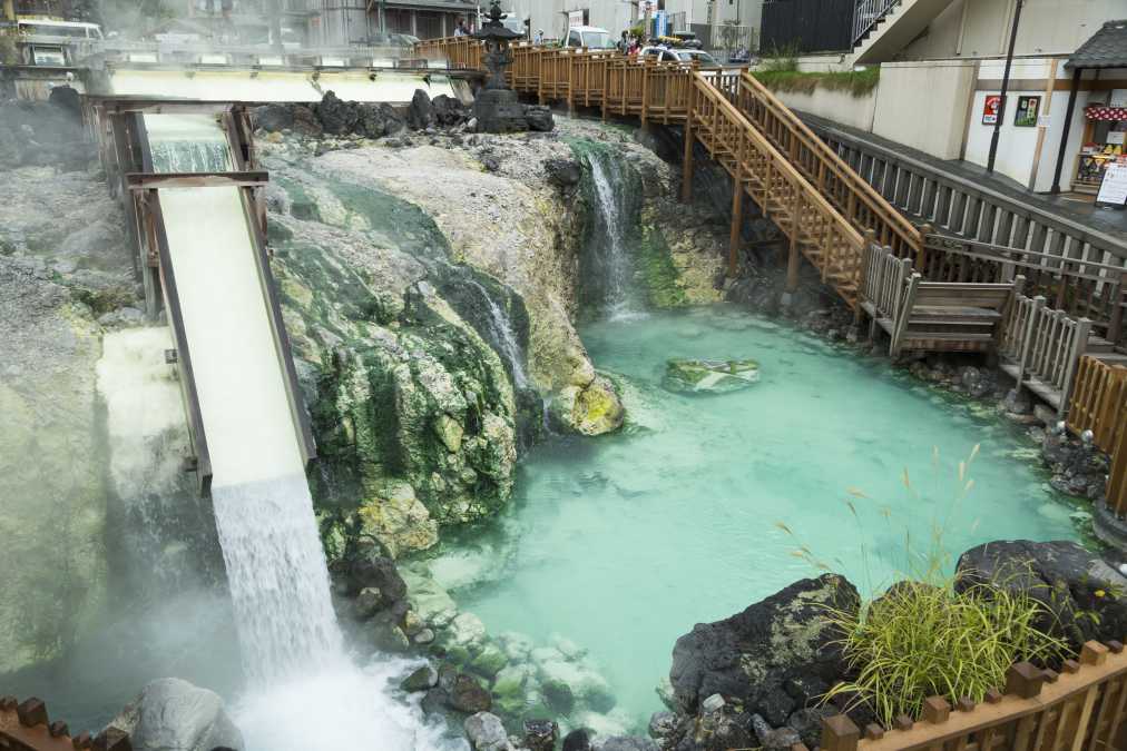 そもそも草津温泉の源泉の色をご存知ですか? 草津のシンボルともいえる湯畑に行ってみると、源泉の湯だまりは少し濁ったようなきれいなエメラルドグリーン色をしていました。