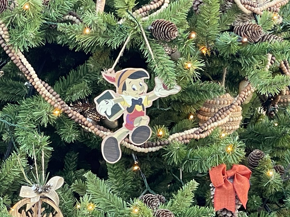 日中はツリーのデコレーションにも注目! ディズニー映画『ピノキオ』に登場するキャラクターたちのオーナメントが飾られているんです!