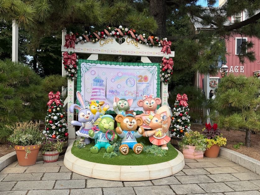 アメリカンウォータフロントのケープコッドには、ダッフィーたちをテーマにしたミニクリスマスツリーが登場。