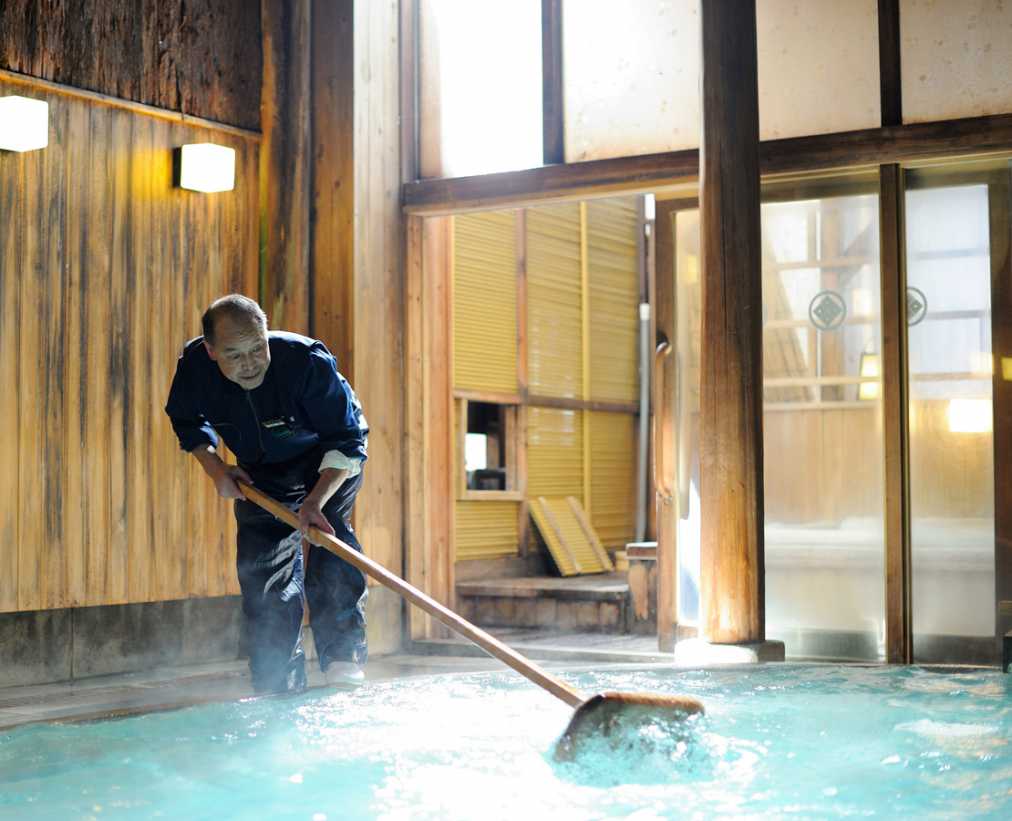 その湯を湯船に満たし、熟練の湯守が温度をチェック。湯量を調節することで入浴に最適な温度にキープします。なんと2時間ごとに湯温をチェックしているのだとか。