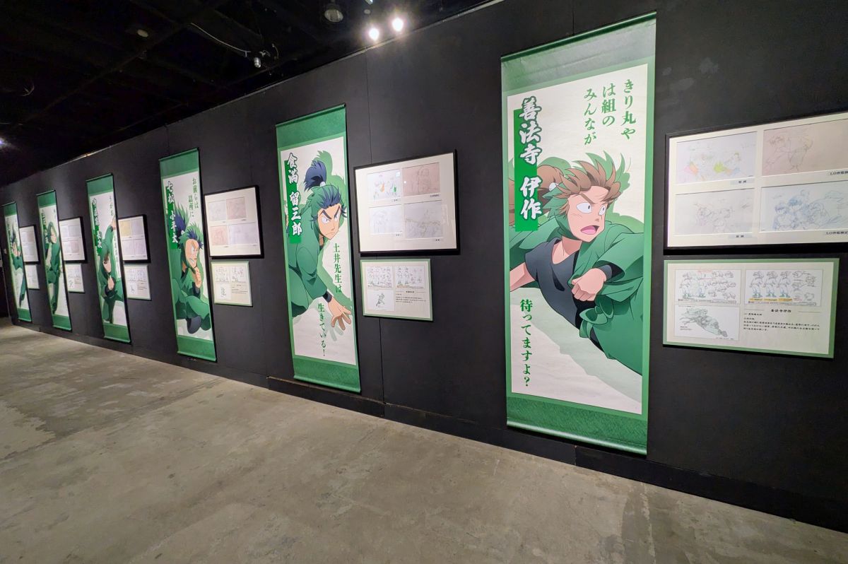 体験エリアを抜けると、お次は「原画展示エリア」。こちらにはキャラクターデザインや原画などの展示があり、映画の台詞が入ったキャラクターの掛け軸が並ぶ光景が壮観です。「私は、お前の先生ではないよ」「先生、一緒に帰ろう」「カステーラは超厚切りで!」・・・瞬時に映画の世界にトリップできる名言に胸が熱くなります。