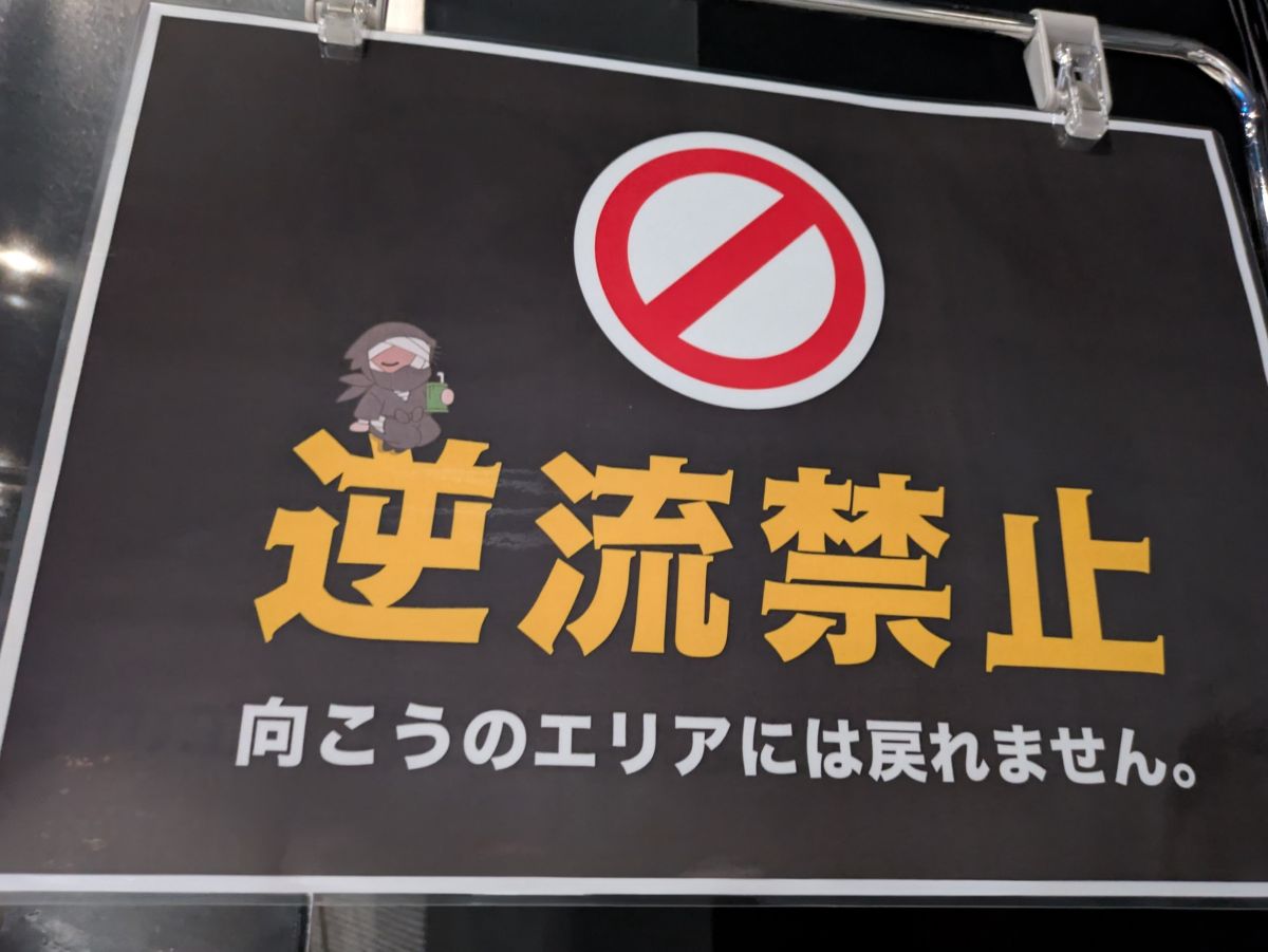 編集部が発見した細部のこだわり・・・それは、注意喚起の看板です。「逆流禁止」「譲り合ってご利用ください」というなにげない看板をよく見ると、雑渡昆奈門と山田先生が!雑渡さんはいつもの横座り!