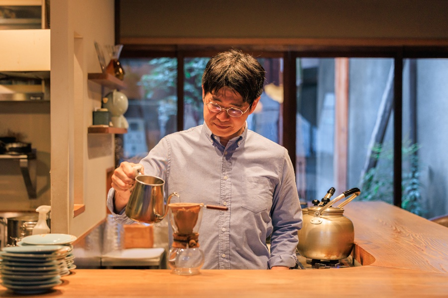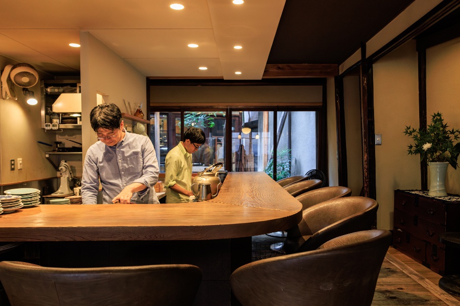 店舗は、築200年の京町家をリノベーション。店主・市川さんが、清水焼の陶芸家であるおじいさまの陶芸工房を改装して、2015年にカフェをオープンしました。照明やインテリアにも細やかなこだわりが光り、唯一無二の空間が生まれています。維持が難しく、年々減少している京町家を活用することで、京都の伝統と美意識を未来へとつないでいます。