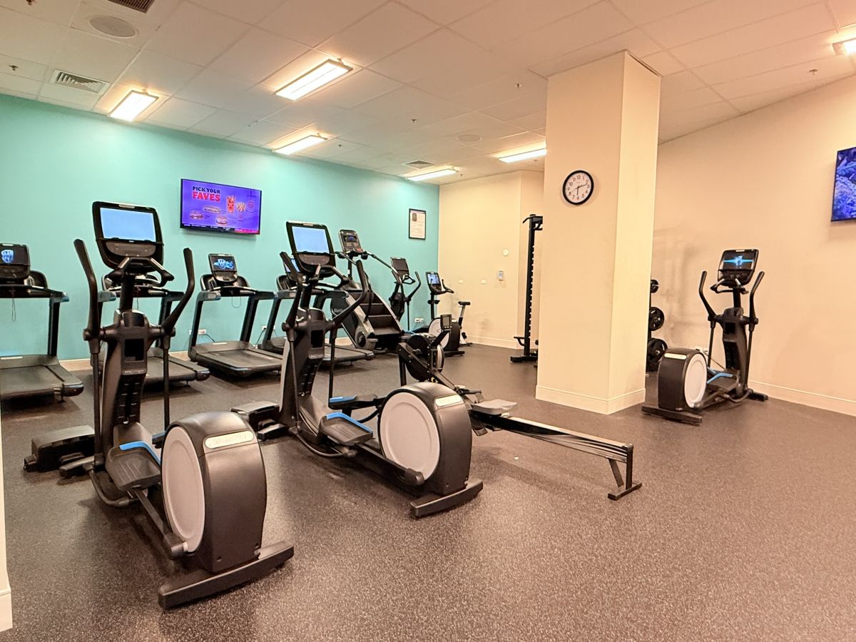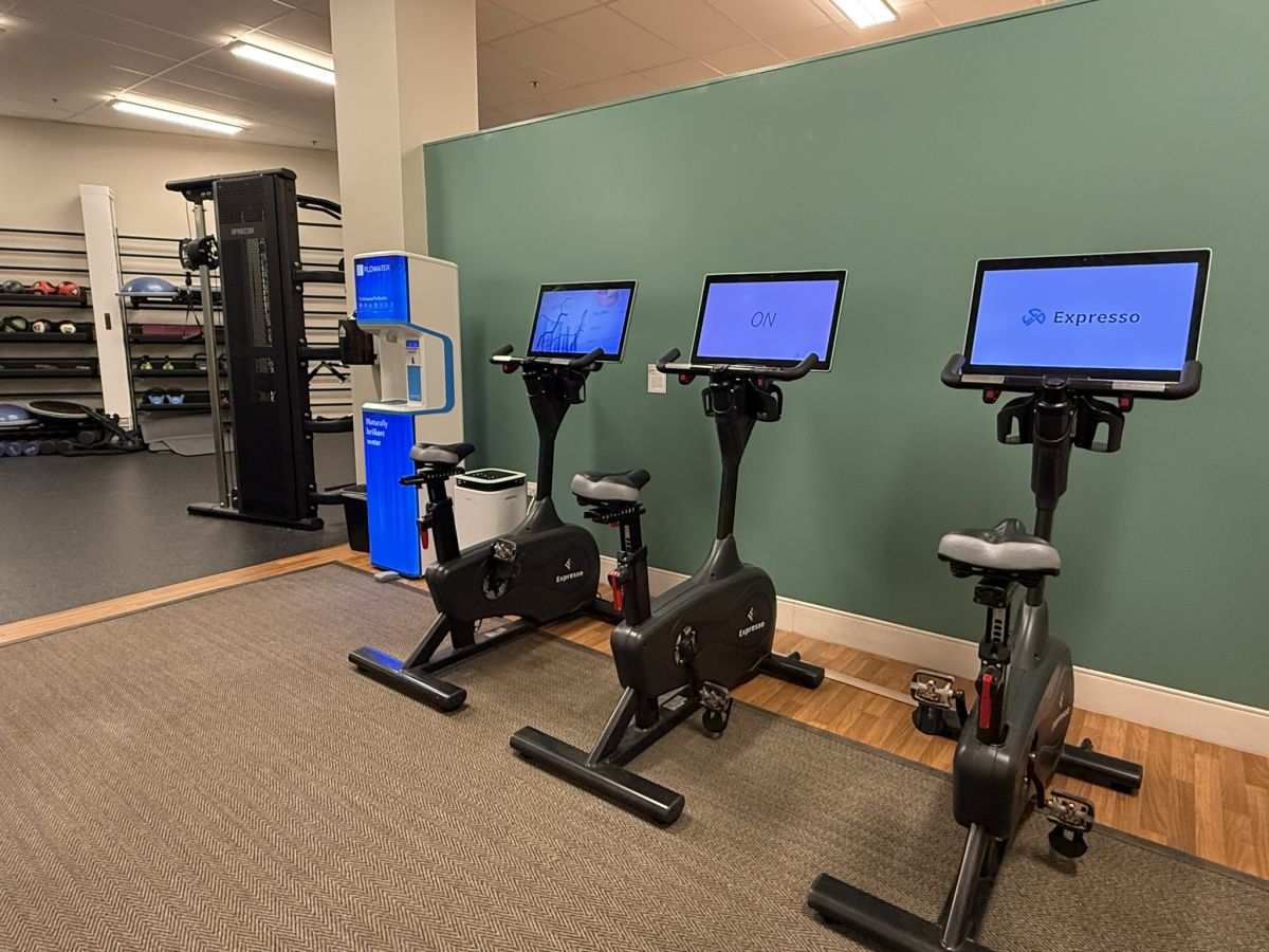 有酸素運動バイクには大型ディスプレイも備えられており、多彩な設備で本格的なワークアウトが可能です。