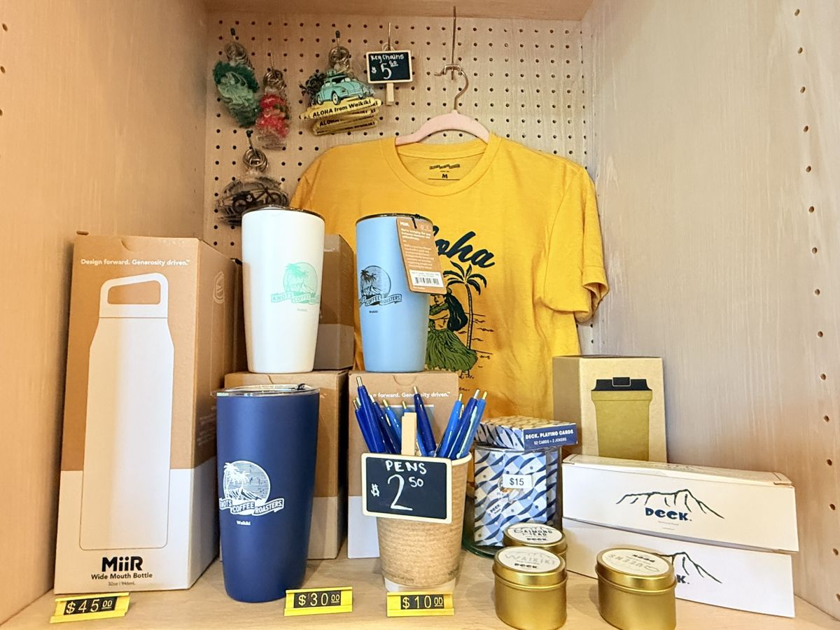 店内では、「ノッツ コーヒー ロースターズ」のオリジナルタンブラーやボトル、「デック」のオリジナルキャンドルなど様々なアイテムを購入できます。