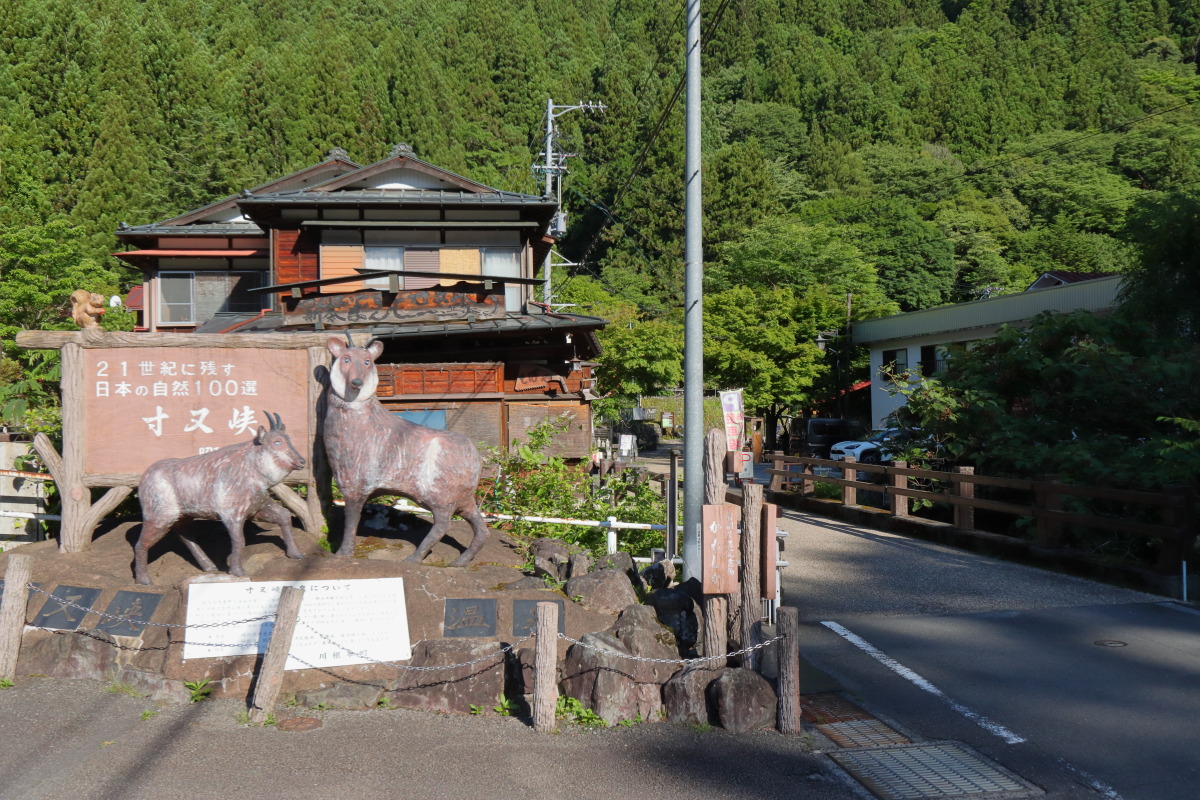 寸又峡温泉は、寸又川が大井川と合流する地点から直線距離で5kmほど上流に位置します。周囲は深く切り込んだ渓谷が続く山深い地で、古くから「信玄の隠し湯」として存在が知られていました。