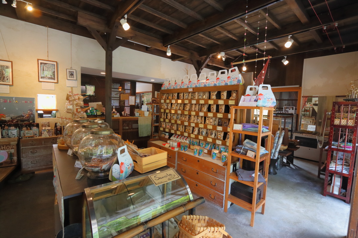 古民家を改装した店内には、店主がセレクトした雑貨や地元作家のクラフトアイテム、東京の老舗煎餅店が手がけたオリジナルの煎餅やおかきなどが所狭しと並びます。