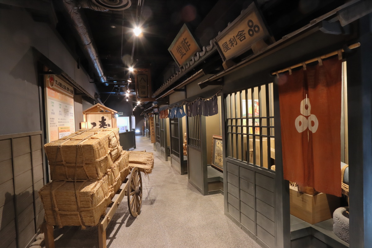 館内に入ると、明治時代の清水港の街並みを再現した展示が続きます。どこかノスタルジックな雰囲気のなかを進むと、現れるのは寿司の屋台。江戸時代に誕生したにぎり寿司の模型が展示されています。