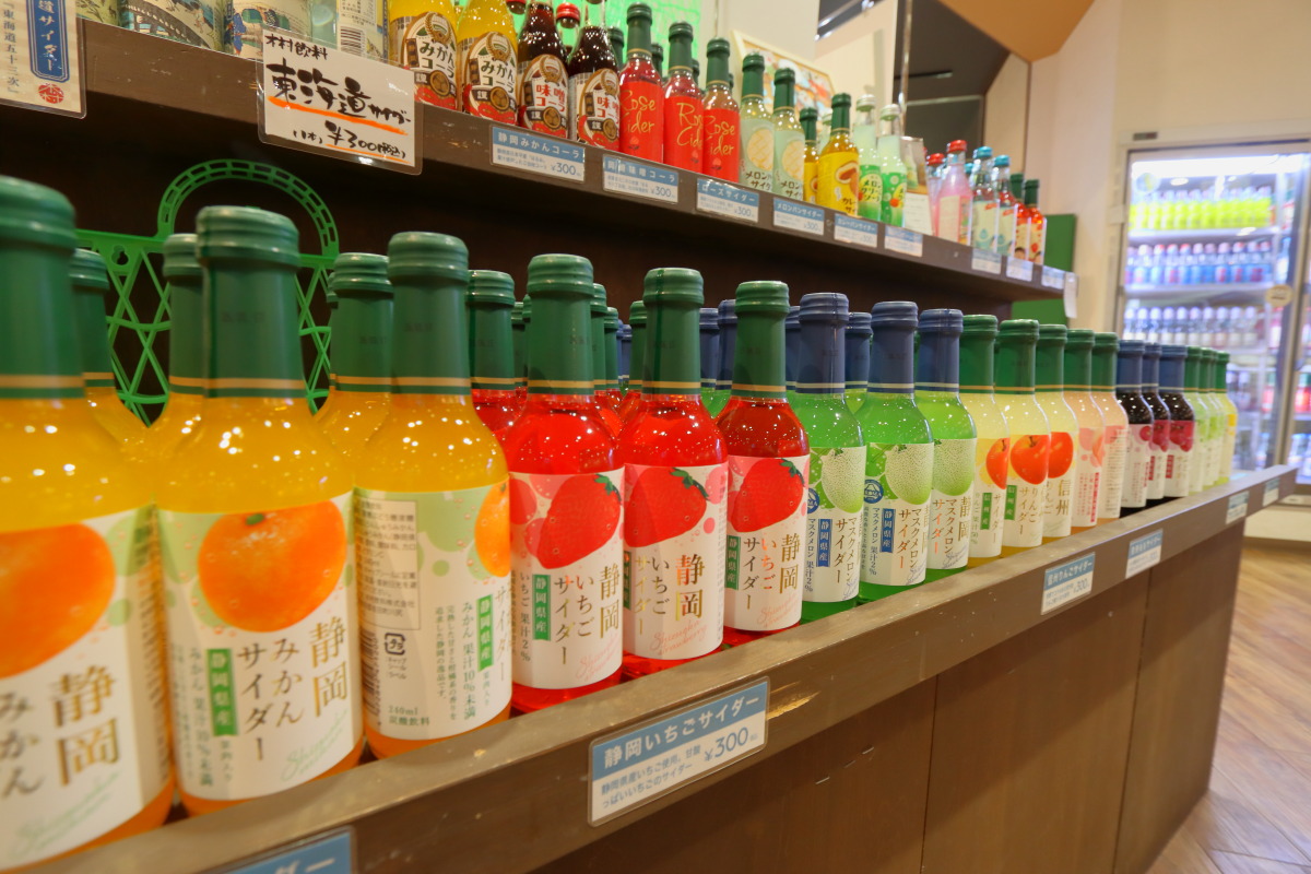 みかんやいちご、マスクメロンなど、静岡ならではのフルーツを使ったサイダーをはじめ、富士山サイダーにしずおか茶コーラ、カレーパンサイダー、うなぎコーラなどなど、見た目も味も楽しめるジュースは話題性抜群のおみやげになること間違いありません。