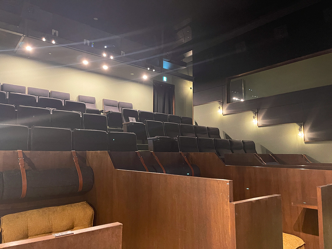 シアターのなかに入ると広々とした空間が広がります。全53席のどこからでもスクリーンが見やすい設計。