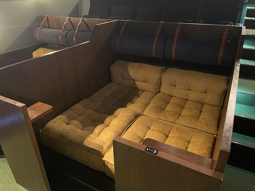 最前列にはペアで利用できる「ふたり掛けソファクッション席」が。リラックスしながら映画を鑑賞できる席になっているので、ぜひ友だちや恋人、夫婦などで利用してみて。