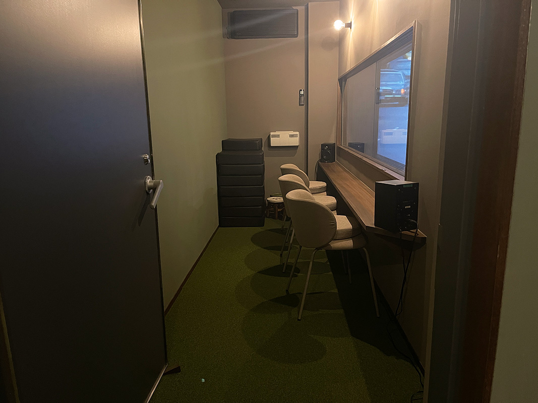 どこかヴィンテージ感のあるシートは、山形の「鶴岡まちなかキネマ」から譲り受けたもの。数年前に「鶴岡まちなかキネマ」が規模を小さくして再スタートをすることになり、その際に縮小して再生する「鶴岡まちなかキネマ」と0から始める「OttO」の想いを共有し合い、シートを譲り受けることに。