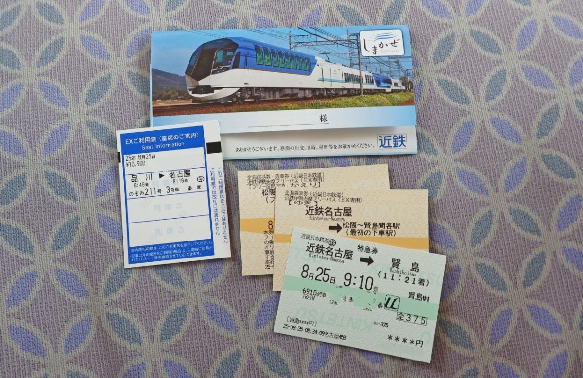 ①近鉄名古屋駅からフリー区間(松阪~賢島駅)までの往復乗車券、往復特急券引換券