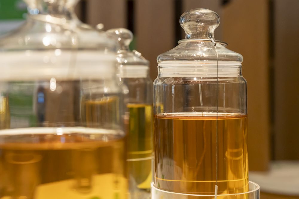 最後に搾りたてみりん(550円)の購入も可能です。 自分でボトルにみりんを注ぐのですが、透明なボトルに注ぐと改めてその透明度にびっくり!