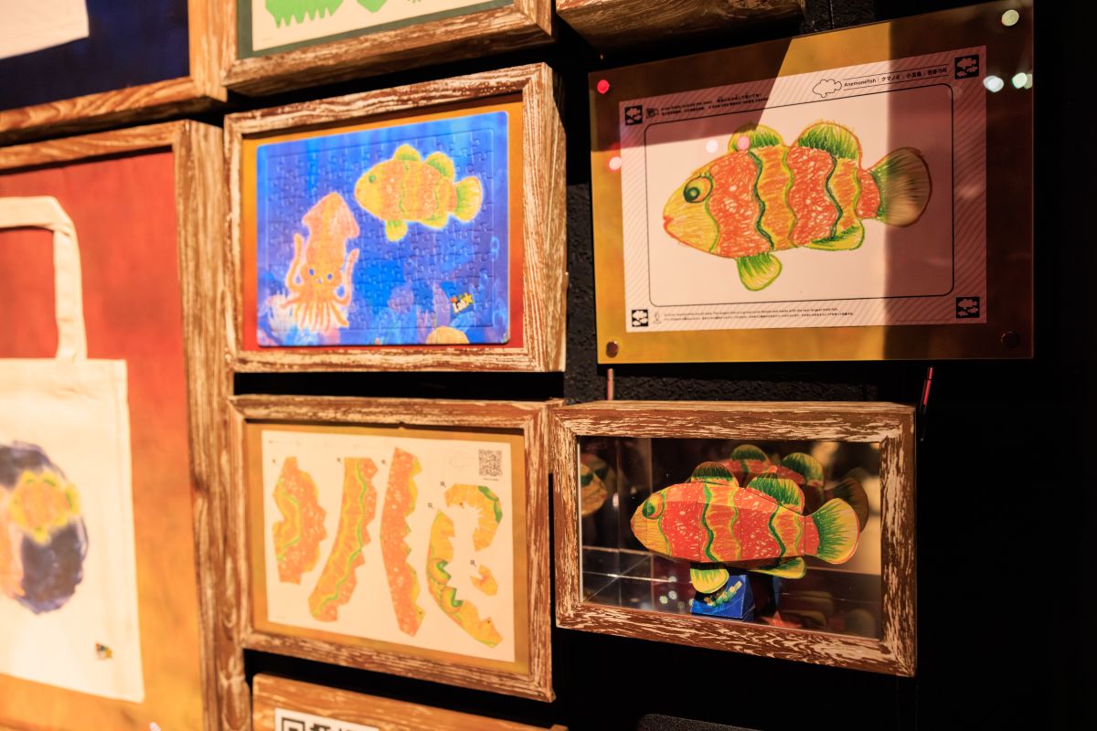「スケッチファクトリー」では、描いた生き物を、缶バッジやマグネット、Tシャツ、ペーパークラフトなどにして持ち帰ることもできますよ。さらに、パズルとマグネットは今回京都で世界初登場!