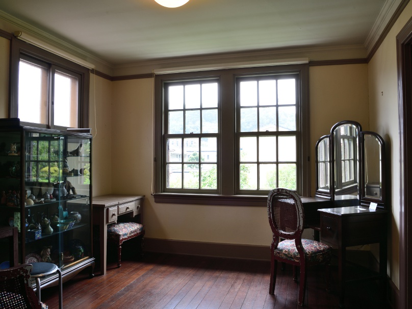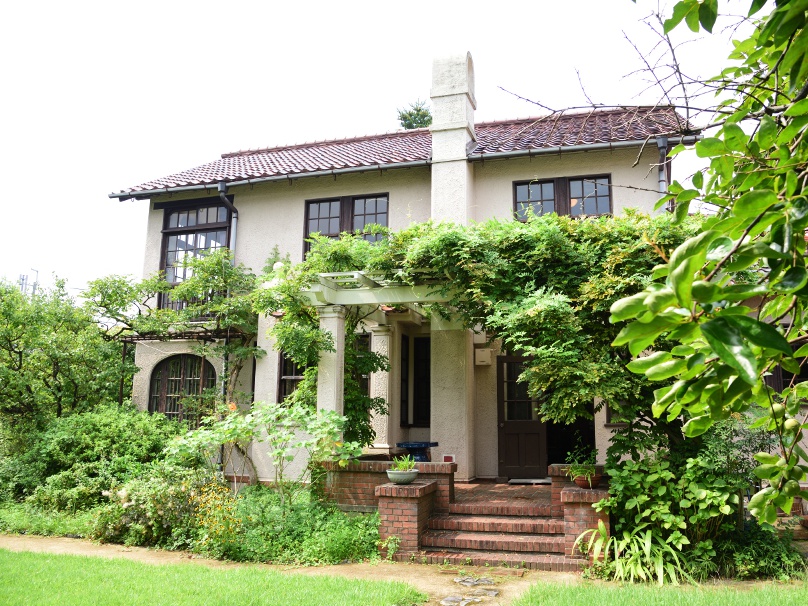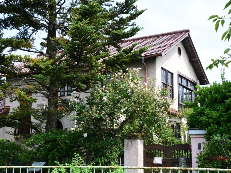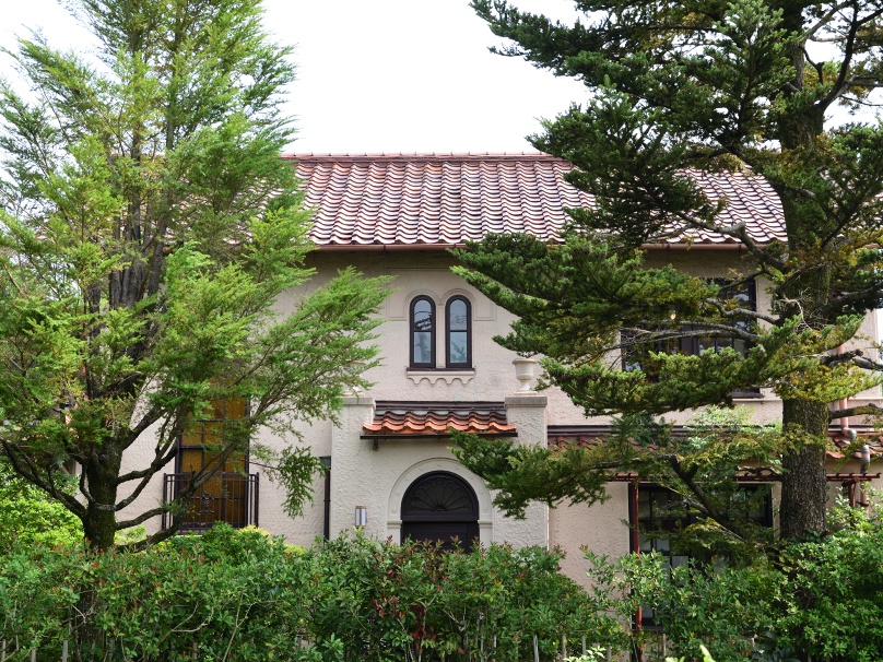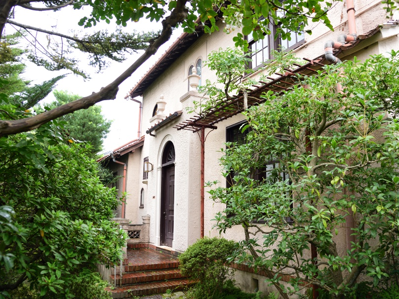 敷地内は、約30坪ある主棟(母屋)と離れ、温室と洗濯場、庭園などで構成。主棟は昭和2年(1927)に建てられた木造2階建て。当時アメリカで流行していたスパニッシュ様式をベースに、切妻屋根の色桟瓦葺の屋根が洋館らしい趣をさらに強くしています。