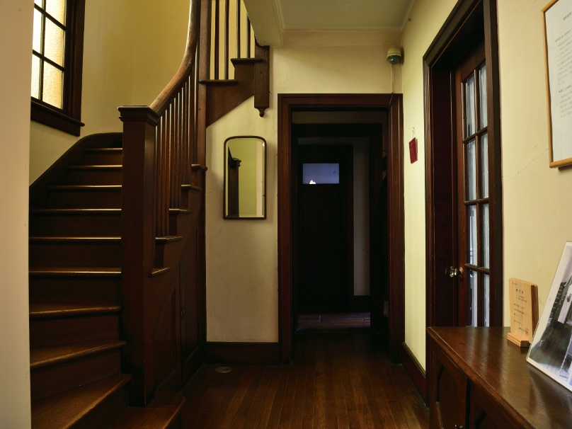 廊下から2階へと続く階段は緩やかなアーチを描いて、眺めるだけで心がときめきます。ヴォーリズ建築の特徴のひとつとして、階段の段差が小さいことが挙げられます。普段着物で生活をすることが多かった静江も、上り下りがしやすかったのではないでしょうか。ヴォーリズの細やかな心配りを感じられます。