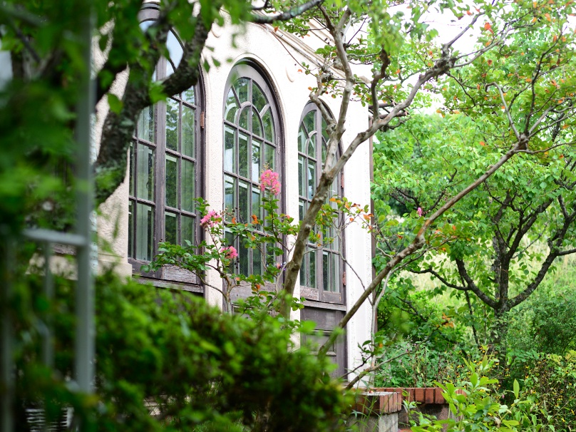 主棟を取り囲む庭園も散策可能です。庭園には外来種・在来種問わずたくさんの樹木が植栽。かつては水を湛えた池もあり、和洋折衷の趣にあふれたプチ池泉回遊式庭園を楽しめます。
